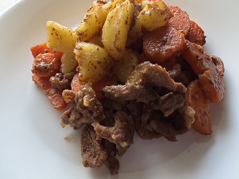 ホクホクのじゃがいも、甘いにんじん、そして特製ダレが絡んだ柔らかなラム肉。
